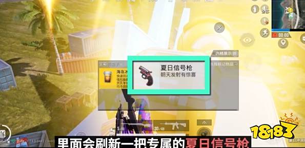 来到中央舞台,特种兵可以通过遮阳伞弹跳到中央的收音机上,上面会有一个物资宝箱,里面会刷新一把专属-夏日信号枪。