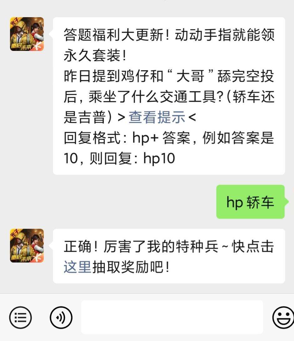 昨日提到鸡仔和“大哥”舔完空投后,乘坐了什么交通工具?应该有很多小伙伴不知道这个问题的答案。今天小编就为大家带来和平精英9月2日微信问答每日一题的答案。