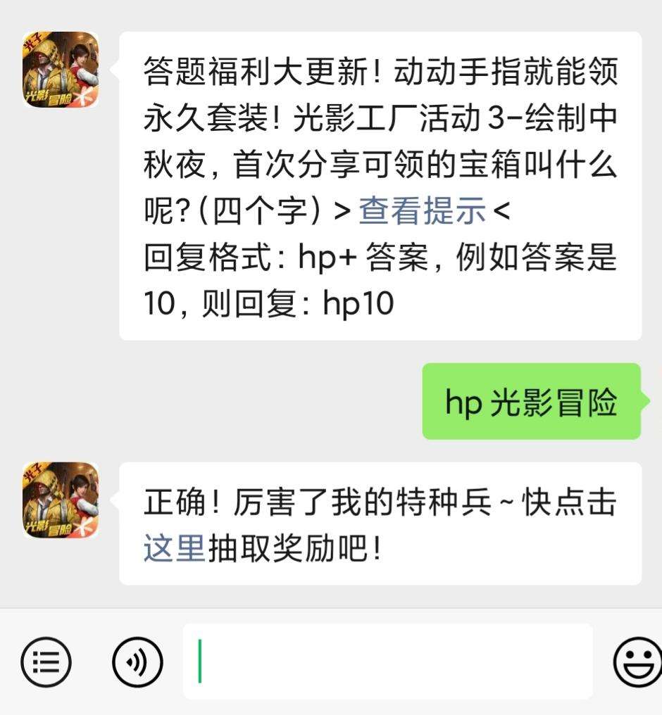 问题:光影工厂活动3-绘制中秋夜,首次分享可领的宝箱叫什么呢?