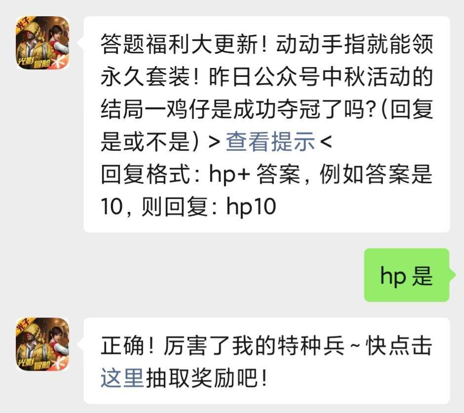 昨日公众号中秋活动的结局一鸡仔是成功夺冠了吗?应该有很多小伙伴不知道这个问题的答案。今天小编就为大家带来和平精英9月22日微信问答每日一题的答案。