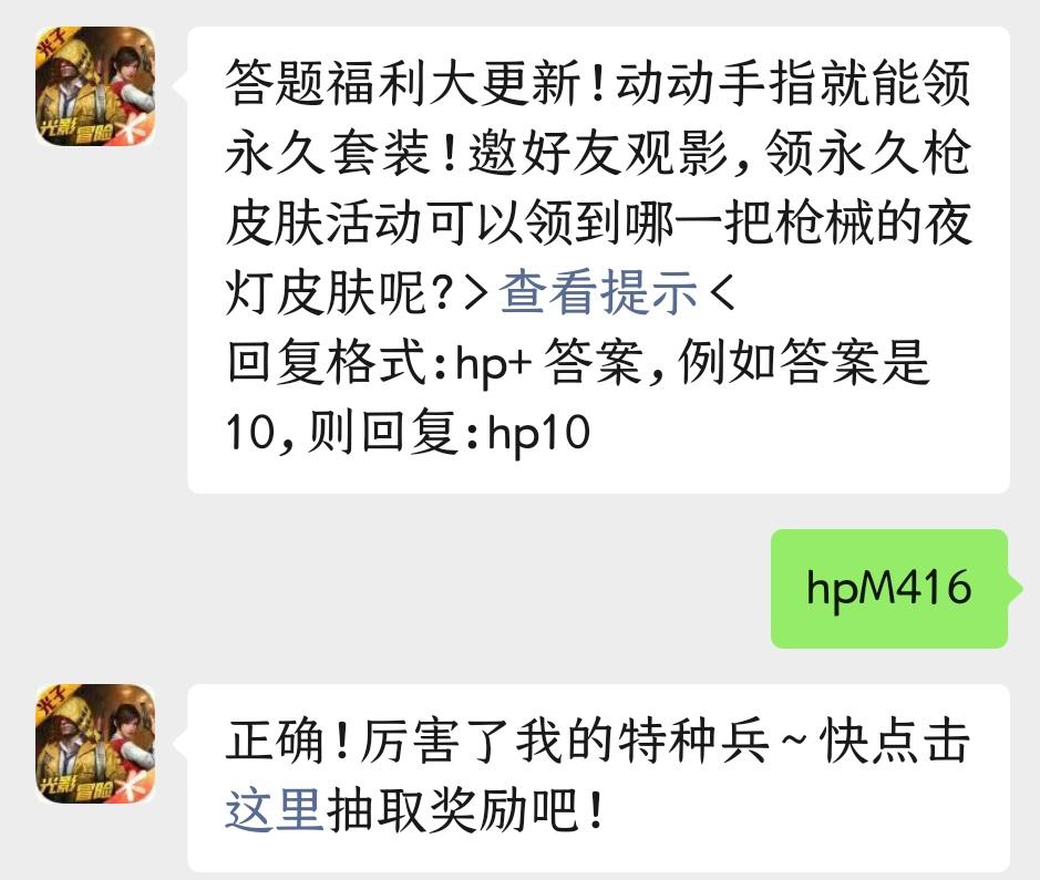 问题:邀好友观影,领永久枪皮肤活动可以领到哪一把枪械的夜灯皮肤呢?