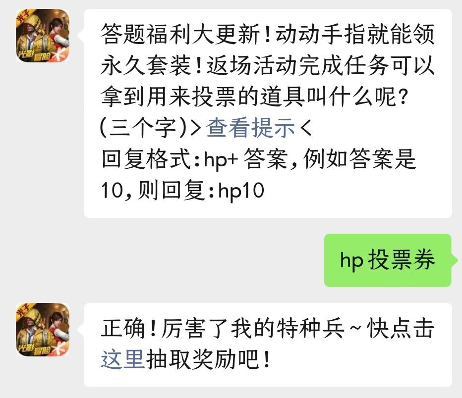 问题:返场活动完成任务可以拿到用来投票的道具叫什么呢?