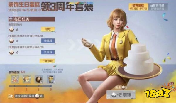 从曝光的任务界面可以看出,只要我们完成一定的时长任务就可以领取这套时装了!每天可以获取4个蛋糕,外加分享获得的1个,2天左右就可以到手了!