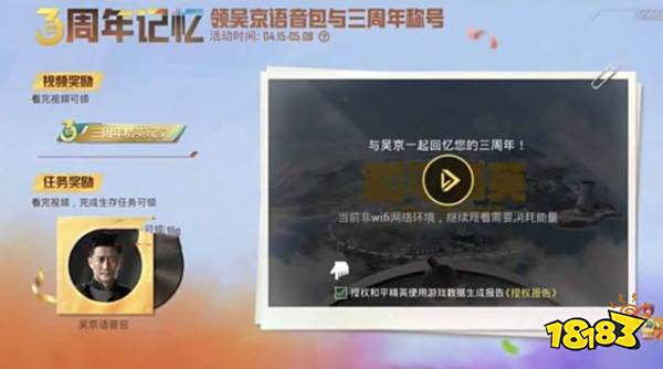 3周年的称号只要动动手指观看视频就可以领取,并且后续还会有免费的语音包!吴京语音包早在一周年前就被曝光,如今以3周年福利的形式上线,还是非常值得我们期待的。