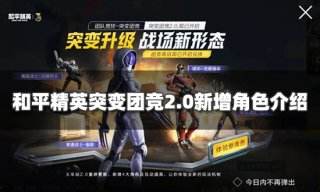 和平精英突变团竞2.0新增角色强化战士狂爪、魅影、冰爆领主和龙息猎手,狂爪可以发射勾爪将敌人拉到身边。特种兵可以利用该技能将远处,尤其是在高点处坚守的特种兵抓过来进行淘汰等。