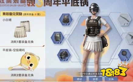 和平精英空投萌叽平底锅可以在三周年的活动界面里获得,一共有六件套,分别是三级头盔、三级背包、一把98K、三级甲和M4,但是获得这些物品需要完成任务才可以兑换,玩家要合成平底锅空投萌叽皮肤需要两套合成装备。