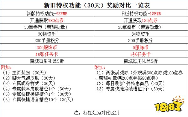 可以看到,新的特权月卡除了增加300服饰币、4张任务卡之外,奖励方面都一样!