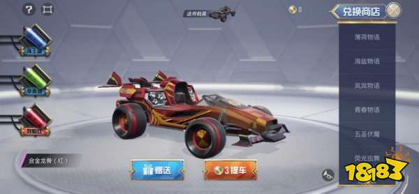 和平精英合金龙骨返场蓝色和绿色的1提车币,红色3提车币,币的话是通过2888碎片进行兑换的,我们获得这些碎片的话价格是不等的,一般情况都需要差不多一千多块左右,少的两个648,多的话就是三个648了。