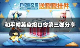 和平精英空投节口令码最新第三弹是皮肤爆料和战斗体验,活动期间,每天最多可以开启6次空投,其中口令每日会刷新3次使用次数,开启空投必得福利碎片,累计最多可得30个,还有概率获得京东卡、AirPods Pro等惊喜奖励,累计开启达一定次数还可获得背包挂件-啾啾。