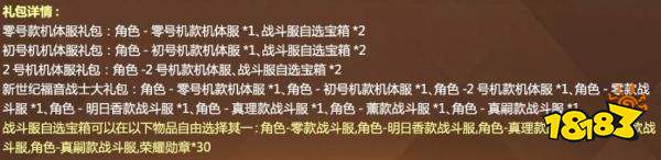 2、3种机体服礼包,每种限量2000个,8000积分兑换获得,价格800元。