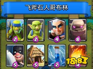 石头人是皇室战争中血量最厚的肉盾,拥有强大的推线能力以及不俗的分裂伤害。当使用石头人搭配飞斧屠夫这种拥有贯穿伤害的后排兵种时,飞斧屠夫可以帮助石头人清理前排陆空粉丝敌兵,辅助石头人尽量以较低的血量消耗来抵达敌方塔下并打出输出。不过实战中想要完整地打出这一波高费进攻,需要相应的圣水支撑,而均费较低的哥布林卡牌则可以为我们提供赚费的机会。今天为大家介绍的是一套以石人屠夫为核心、以哥布林卡牌为辅助的一套飞斧石人哥布林流派打法,希望对大家能有所帮助。