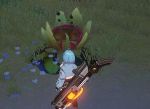 除了火油花,游戏里还经常出现蒲公英的植物,我们可以用武器打击它的根部,之后蒲公英会分裂,用弓箭射落天上漂浮的蒲公英就可以拾取黑核了。