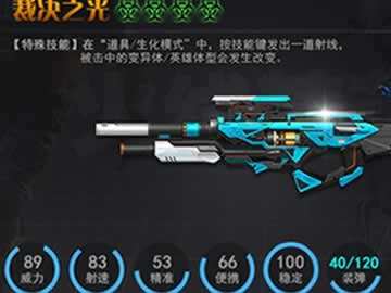 本次《火线精英》手机版的更新最受瞩目的想必就是四星猎魔主武器:裁决之光。这把武器稳定性极高,并且拥有特殊技能。在“道具/生化模式”中,按技能键射线可以使被击中的变异体、英雄体型改变,若变大则移速下降,若变小则受到伤害上升。这么犀利的技能你值得体验一番!