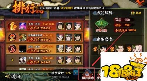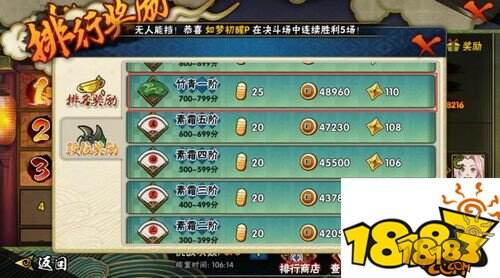 那么我们需要什么材料才能兑换这个碎片呢?很简单,只要我们保证每天武斗祭(排行榜挑战)段位在竹青一级就能获得110点兑换劵来兑换干柿鬼鲛(干柿鬼鲛碎片需要110点兑换劵)而竹青一级只要有参与挑战的玩家基本都能达到。