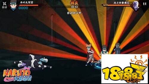 木叶丸军团特攻弹:依次将乌冬和萌黄向前投掷,击退敌人。最后使出全力将两人合体投出,把敌人击飞。每次攻击时可以用遥感改变投掷的方向。