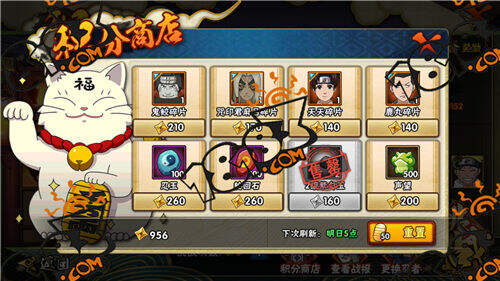7、积分商店也可以兑换声望,200积分兑换500点声望,不过小编建议积分还是兑换鬼鲛或者君麻吕,这样比较划算,因为这两个忍者除了积分兑换没有其他办法可以获得, 而相比较而言,声望就有点不值得了。