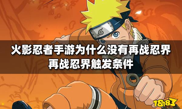 火影忍者手游再战忍界是需要解锁条件的,它的解锁条件是需要此账号中有过50级以上的区服账号,并且重建新区号时才会触发再战忍界活动,比如你当前新区建的这个号里面,最高的账号等级才49级那就不会触发再战忍界。