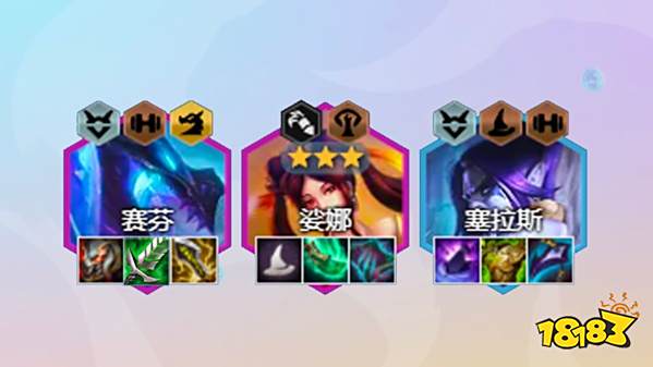 阵容组成:赛芬、塞拉斯、璐璐、娑娜(法师纹章)、艾尼维亚、巴德、黑默丁格