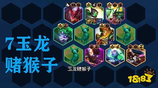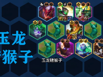 金铲铲之战s7.5拼多多玉龙猴子阵容推荐-羁绊组成-7玉龙+2格斗+2冒险+2秘书+2狂刃+2换型+1龙神;棋子组成-猴子、纳尔、杰斯、索拉卡、巴德、奥拉夫、石傲玉、贾克斯。