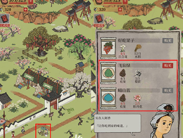 其中松果直接去采集松树就可以了,梨花则是去采集梨树。