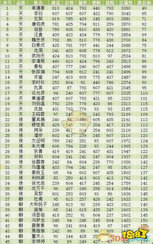以上就是本期关于《江南百景图》全人物满级属性数据一览的全部内容了,要想获取更多游戏资讯请点击关注18183手游网。