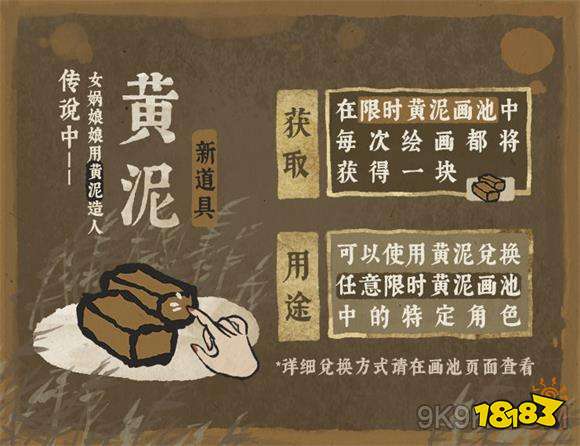每次在【限时黄泥卡池】中绘画都将获得一块【黄泥】。