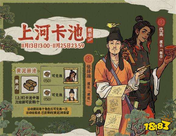 限时黄泥卡池,可积攒新道具【黄泥】,用于兑换特定角色。每个角色仅可兑换一次。
