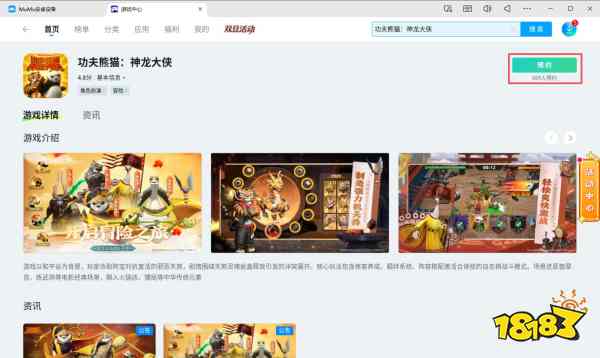方法一:打开游戏中心或直接在搜索框搜索功夫熊猫:神龙大侠,点击预约,游戏上线后游戏将自动下载;
