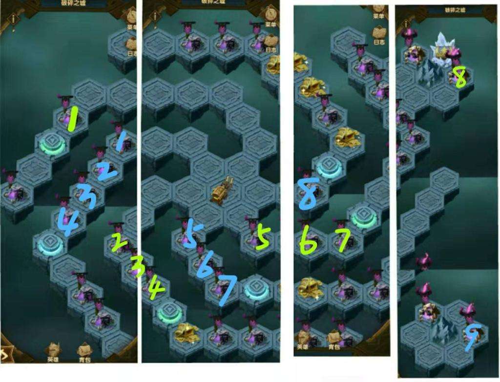 同理走绿色路线最后则是一张雪米拉的英雄碎片。挑战过程中一定得按照我标注的顺序进行才可以,因为要是走错或者打了不必要要关卡那么存在机关的搬格消失那么将无法开启传送阵,只得从头再来了,每一条路线的容错率只有一次,这一次的“错误”可以好好利用起来多捡次遗物升升战力。