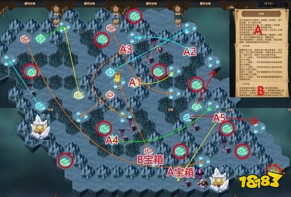 路线六:9-10-A3-A4-A5,到达第一个宝箱那里,清完除宝箱前的小怪,宝箱前的打不过不要紧,先回中心点