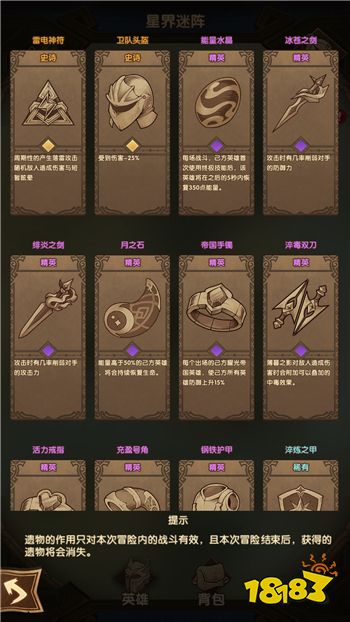 打前面的精英遗物之前,190记得留一些用来回能量,有日月石的忽略我,开局加速6秒的蓝色遗物记得拿,给蝴蝶攒能量过精英,碰到拍拍熊或者是狮子骨王这种容易秒人减员的,我一般放骨王去对位,对方开大我也开大,运气好一条命都不用丢,运气不好也能复活,没骨王的放狮子讲道理也能过