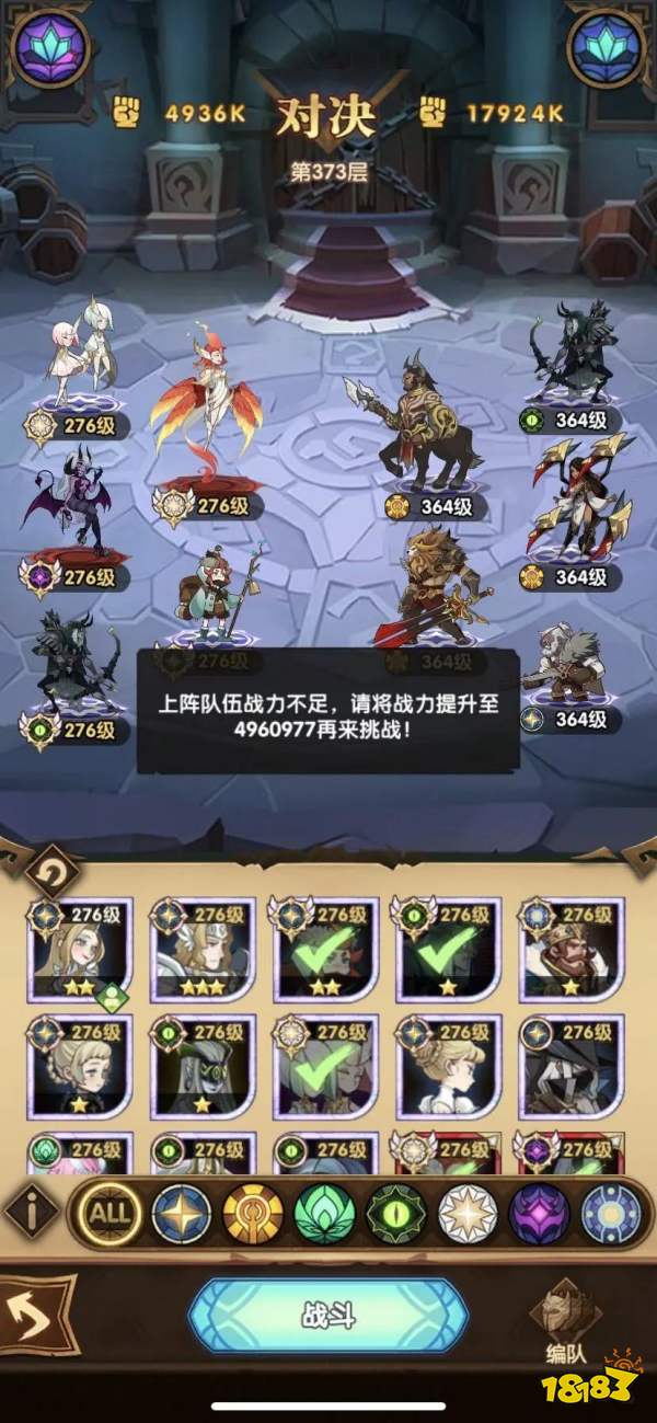 不用光环就是这么个好处,我没办法re上百次,所以我必须观察战斗过程中的每一处细节。我建议大家也多多观察,不要无脑抄作业。并不是阵容站位一样,你就能过,每一件装备的差异,神器的分配,专属的等级,都对阵容的实际强度有着显著的影响。