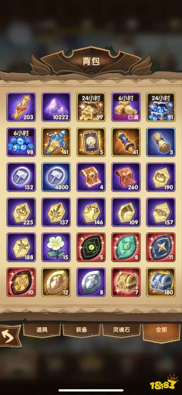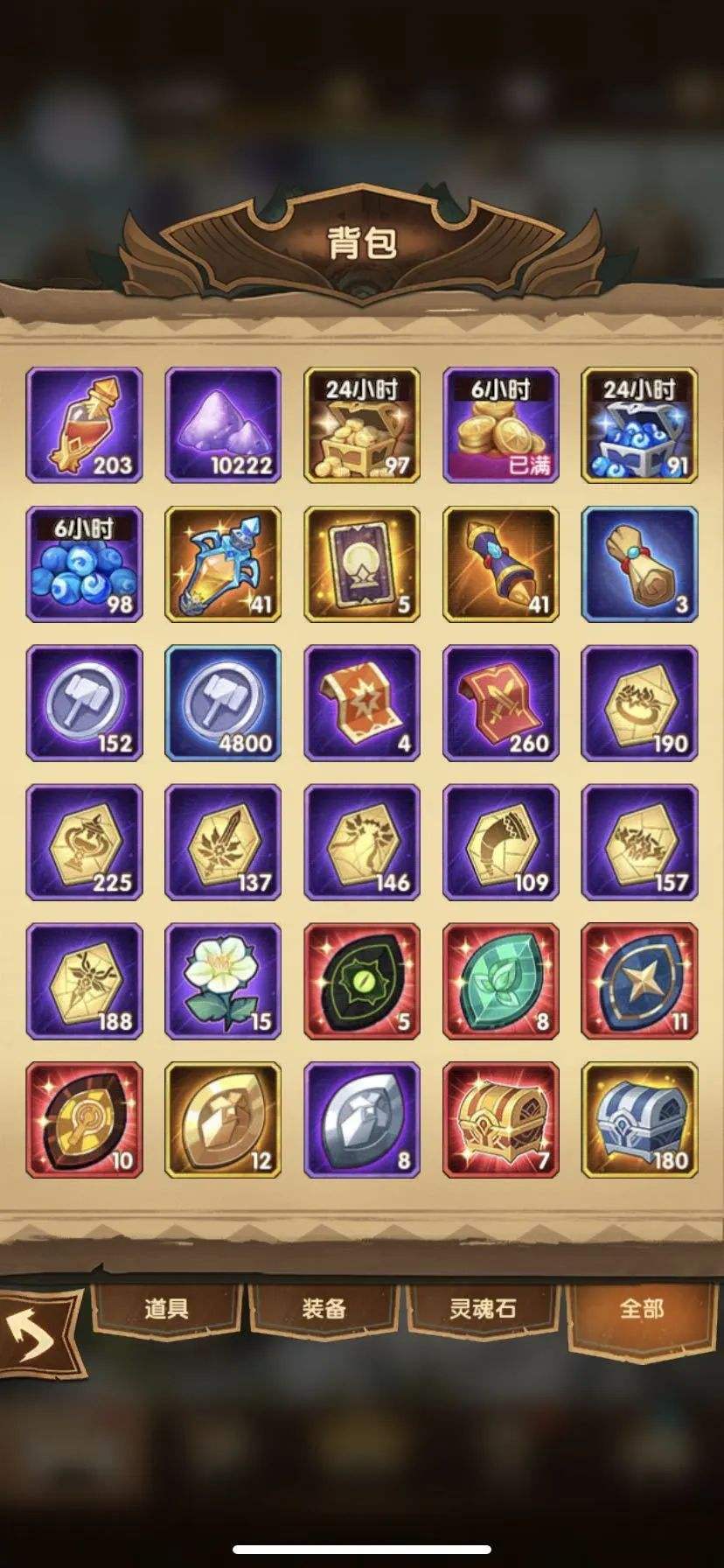 资源方面水晶276,身上的经验还没用完,包里满经验金币箱。