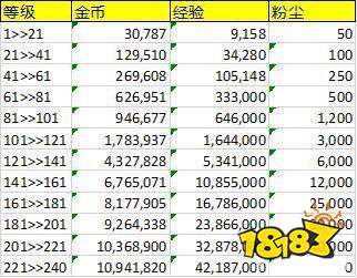 本次给大家带来的是剑与远征中金币、经验、粉尘方面的升阶表,这个相信很多玩家都需要,有这份表格能够更好的帮助我们计算物资的需求量,下面就给大家附上详细图标,快一起看看吧。