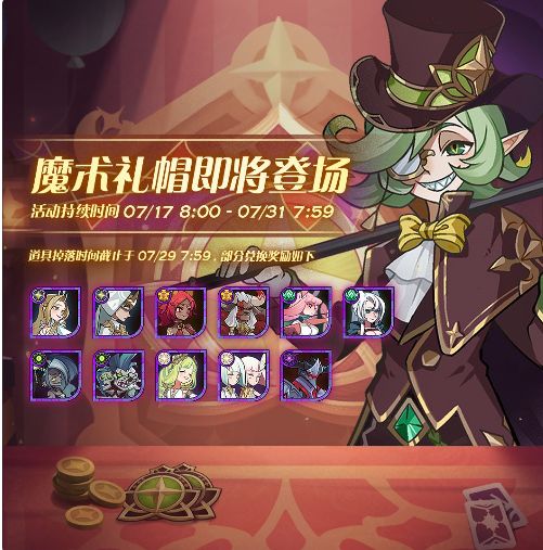 活动开启后,通过参加怪诞魔术师活动、奇境探险、每日活跃宝箱均可以获得「魔术券」,使用「魔术券」可以进行抽奖,累计抽取10次后可以获得10个「马戏团纪念章」,使用「马戏团纪念章」可以兑换丰富大奖!