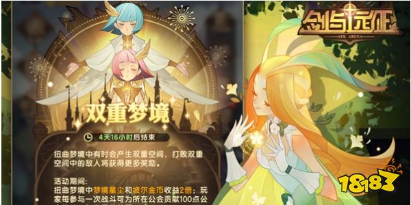 活动期间内扭曲梦境中梦境星尘和坡尔金币收益2倍;玩家每参与一次战斗可为所在公会贡献100点公会经验,每期最多获得1000点。