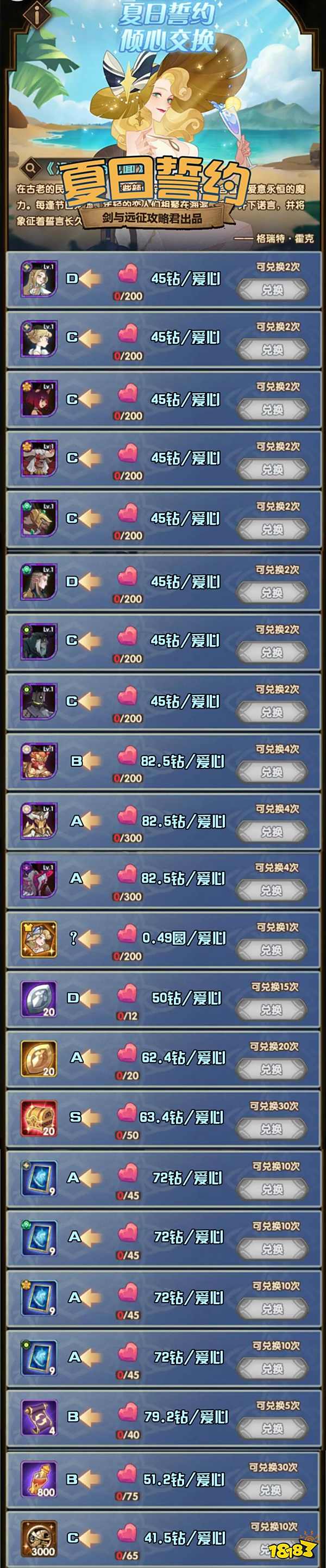 剑与远征中夏日誓约倾心交换上线了,在夏日誓约产生的道具誓约石。很多玩家不知道要怎么换。换什么性价比最高。那本期就给大家带来剑与远征夏日誓约兑换优先级,夏日誓约换什么性价比最高,希望能帮到大家。