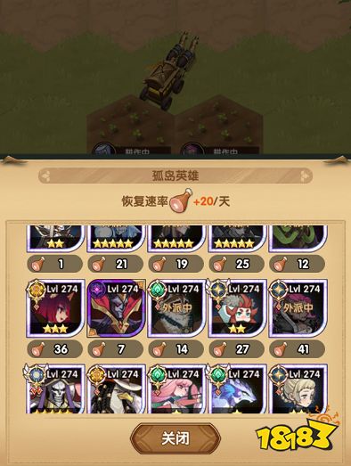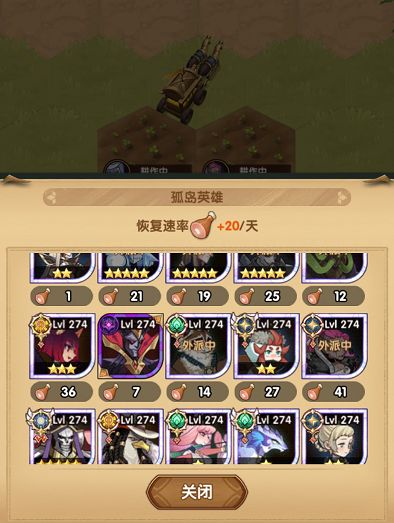 4个英雄用于农田、1个英雄用于修船、1个英雄用于钓鱼、主力队用于清小怪,剩余的英雄用于打领主(上一个英雄即可)、清藤蔓,清小怪的英雄没体力后换到有体力的格子继续刷小怪。