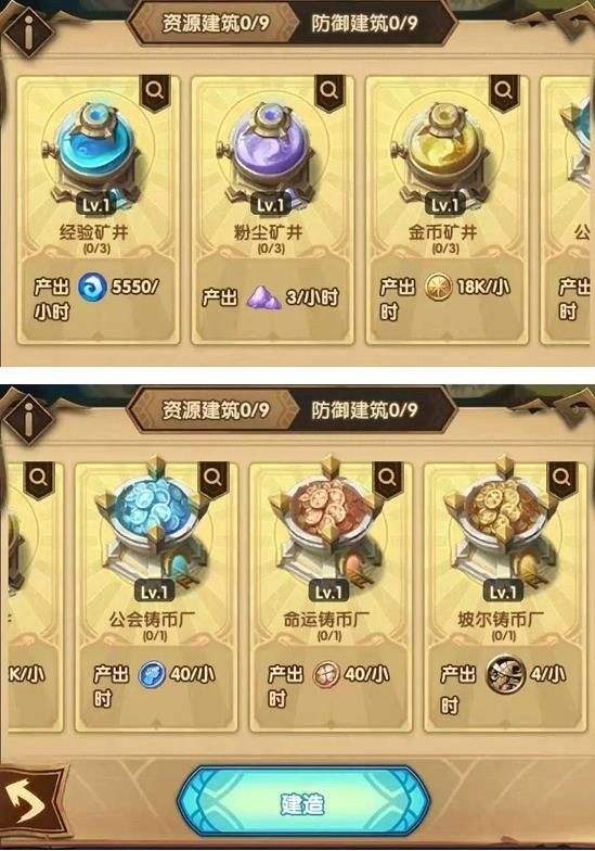 2.玩家可以建造资源建筑和防御建筑两种,每种最多建造9个,部分资源建筑有单个建造上限。