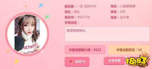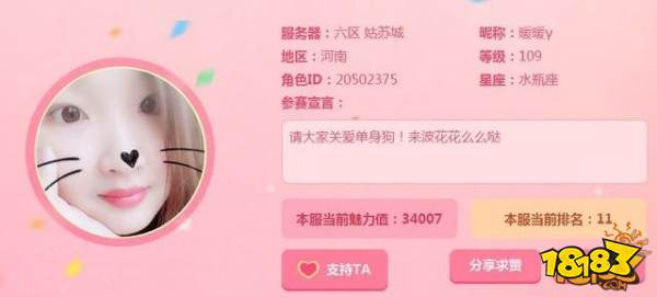 又是一区!一区玩家颜值当真是高!小姐姐的参赛宣言也可以说是非常可爱了~如果我骗你说我不喜欢你,你还会对我撒娇么?(期待的眼神.jpg)