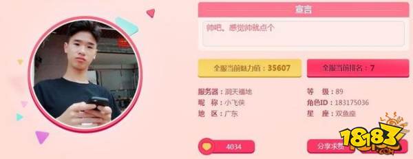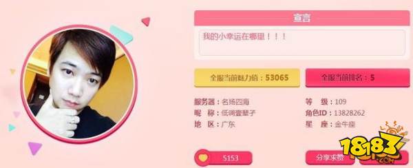 这位小哥哥竟然有五万多的魅力值~真是高到爆炸!小哥哥本人也是很阳光帅气的哦~小哥哥看我!我就是你的小幸运~