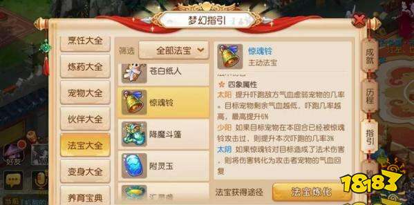 比如除了惊魂铃之外,其他主动法宝的少阳全部会增加该法宝的持续时间。