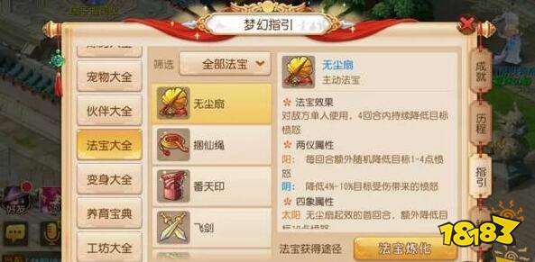 首先,在其中选出你暂时不需要的主动法宝,比如说番天印这种又看几率又看时机的法宝,还有无尘扇这种有更上位的特技替代的法宝,对于很多人来说优先度并不高。