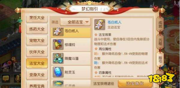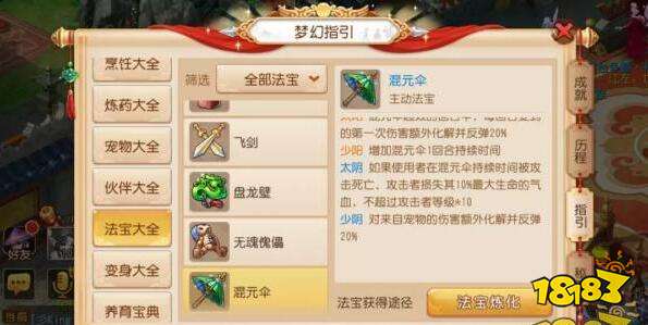和被动法宝“只要装备上就能随机触发”不同,主动法宝需要各位少侠消耗宝贵的一回合出手机会去使用,所以主动法宝的修炼优先顺序和使用时机非常重要。通常,我们可以将主动法宝分为防御类、干扰类、辅助类等多种不同类型。