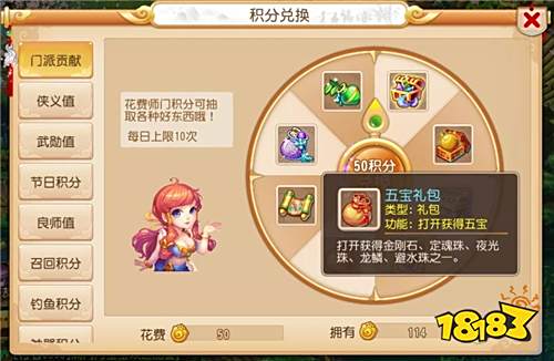 还有,门贡兑换也不要忽略。如果运气好转到五宝礼包,开出金刚石或者定魂珠那也是血赚。当然,如果运气差一点转到吉祥锦囊也是不亏的。毕竟,吉祥锦囊能开出一本低级兽诀和一个心魔宝珠,相当于金币和经验同时入手。