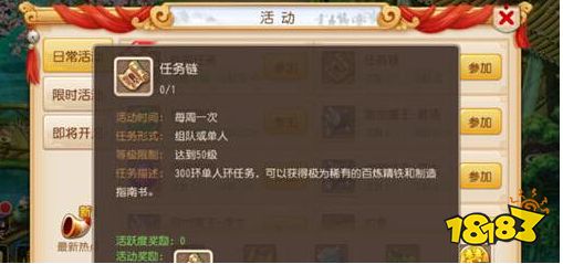 我们可以在活动中查看把每天的限时活动,一般来说限时活动的奖励丰厚,经验也多。