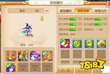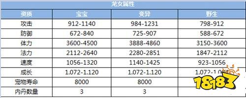 从属性表中看,在55级的3只宠物中,龙女的攻击资质虽然不如同等级的鲛将军,但比起蚌仙子高很多,速度是最高的,体力与蚌仙子持平,从资质、自身携带技能来看都适合打成法宠,特别是签到赠送的龙女自带认证法术攻击技能——水漫金山,龙女培养成法攻宠物毋庸置疑。