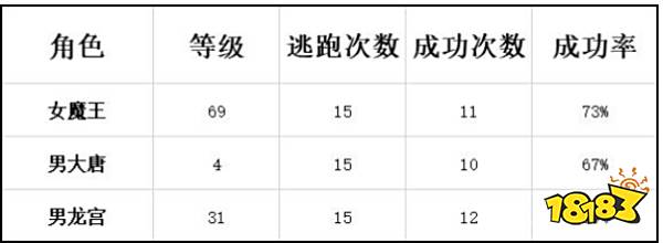 根据表格的数据发现,逃跑的平均成功率在73%,基本符合玩家的固有经验。