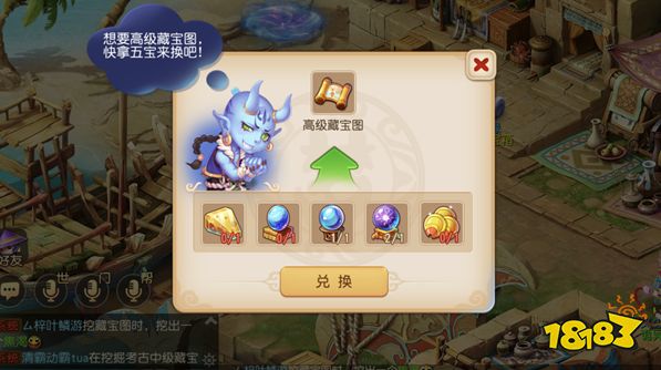 收集避水珠、定魂珠、龙鳞、夜光珠、金刚石五宝后可以兑换高级藏宝图。