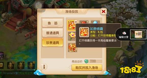 鱼塘中有:很多玩家投放的鱼苗,鱼苗经过一段时间成熟以后就可以进入捕捞状态了,而且玩家还可以投放一些道具,比如说一些宝石和奇珍道具,若是鱼苗不足或者里面没有什么道具的话,就会钓到系统分配的鱼类。